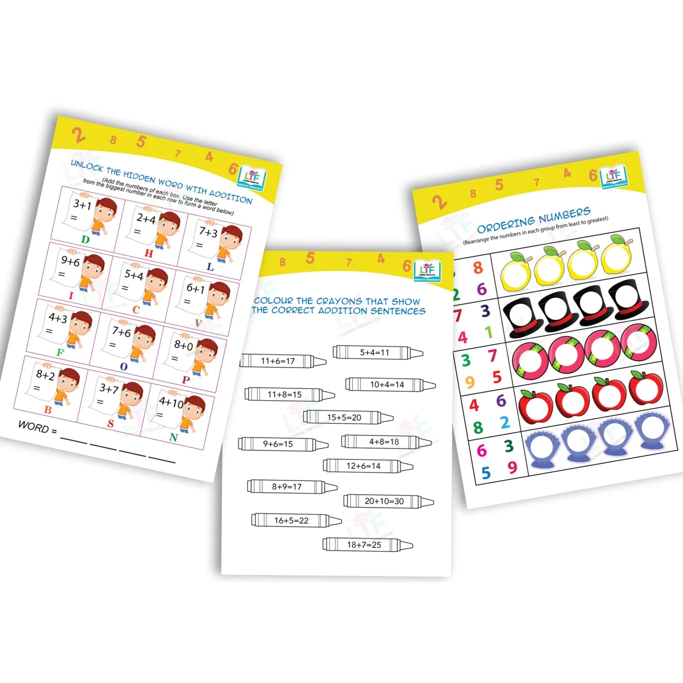 Learning Through Fun maths activity book for young learners including all activities related to mathematics such as match the following, Count and match, coloring, counting, tracing, maze, sequence, drawing, sums, before after between, missing numbers, greater and smaller number, shapes, subtraction, skip the number, shapes and many more. The activities are designed to challenge children and make them become efficient problem solvers. LTF maths activity book is filled with different activities on each page with colorful illustrations. The book explains fundamental maths in a fun and engaging way so that the child develops interest and confidence in the subject for the future. The worksheets in the books are a great way to track children’s progress in the subject. An ultimate collection of maths puzzles & expressive images that promote logical thinking, motor skill development & solving skills.