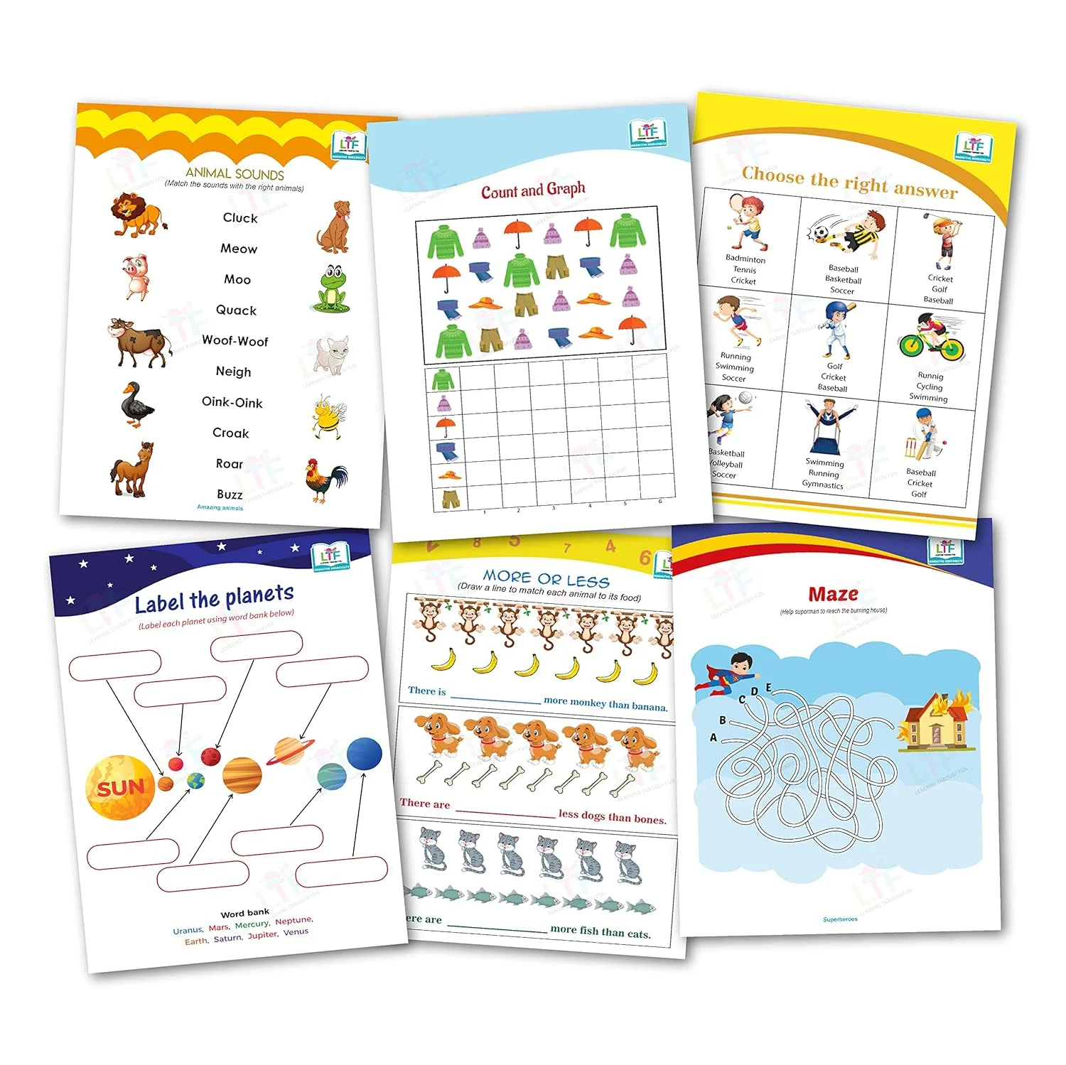 • Worksheets developed to improve attention, direction following, phonetic skills, fine motor skills, logical thinking, problem-solving and help the child learn things on their own through engaging themes.