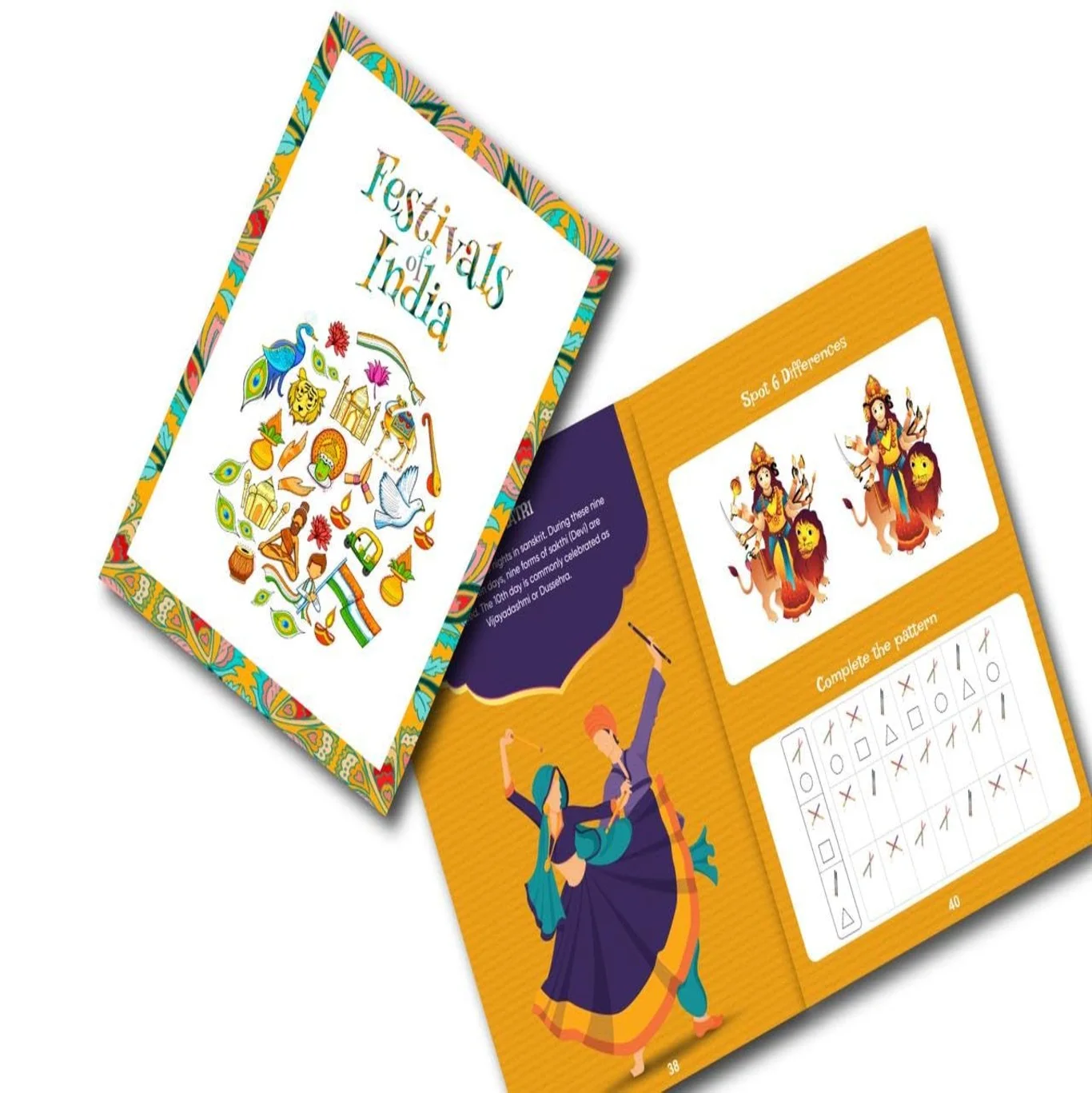 - This activity book will help children navigate through India’s colorful festival calendar with the help of engaging activities such as number games, crossword puzzles, word search, long & short vowels, spot the difference, and many more activities.