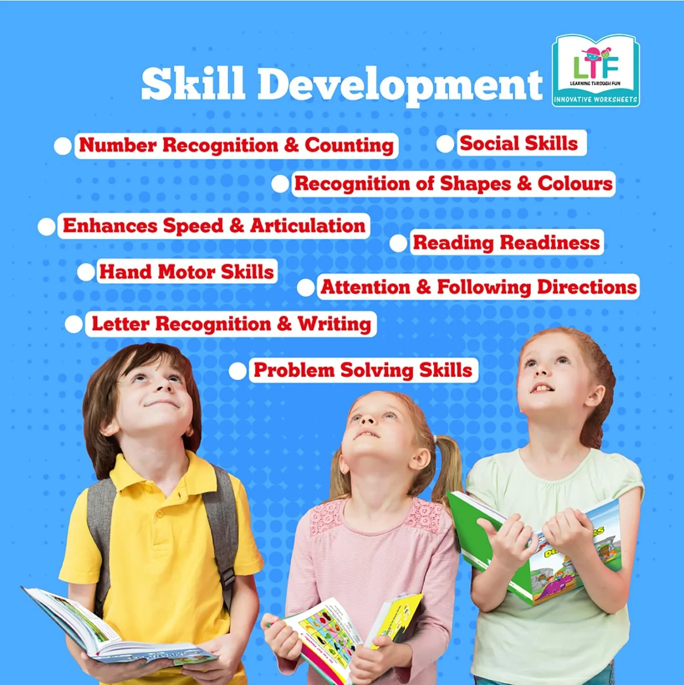 Puzzles developed to improve fine motor skills, logical thinking and help the child learn things on their own through engaging themes. LTF Activity Books are a comprehensive assessment tool for parents to monitor the progress of their children. The activity books help build a strong foundation for the kids and help in exploring multiple concepts and ideas.