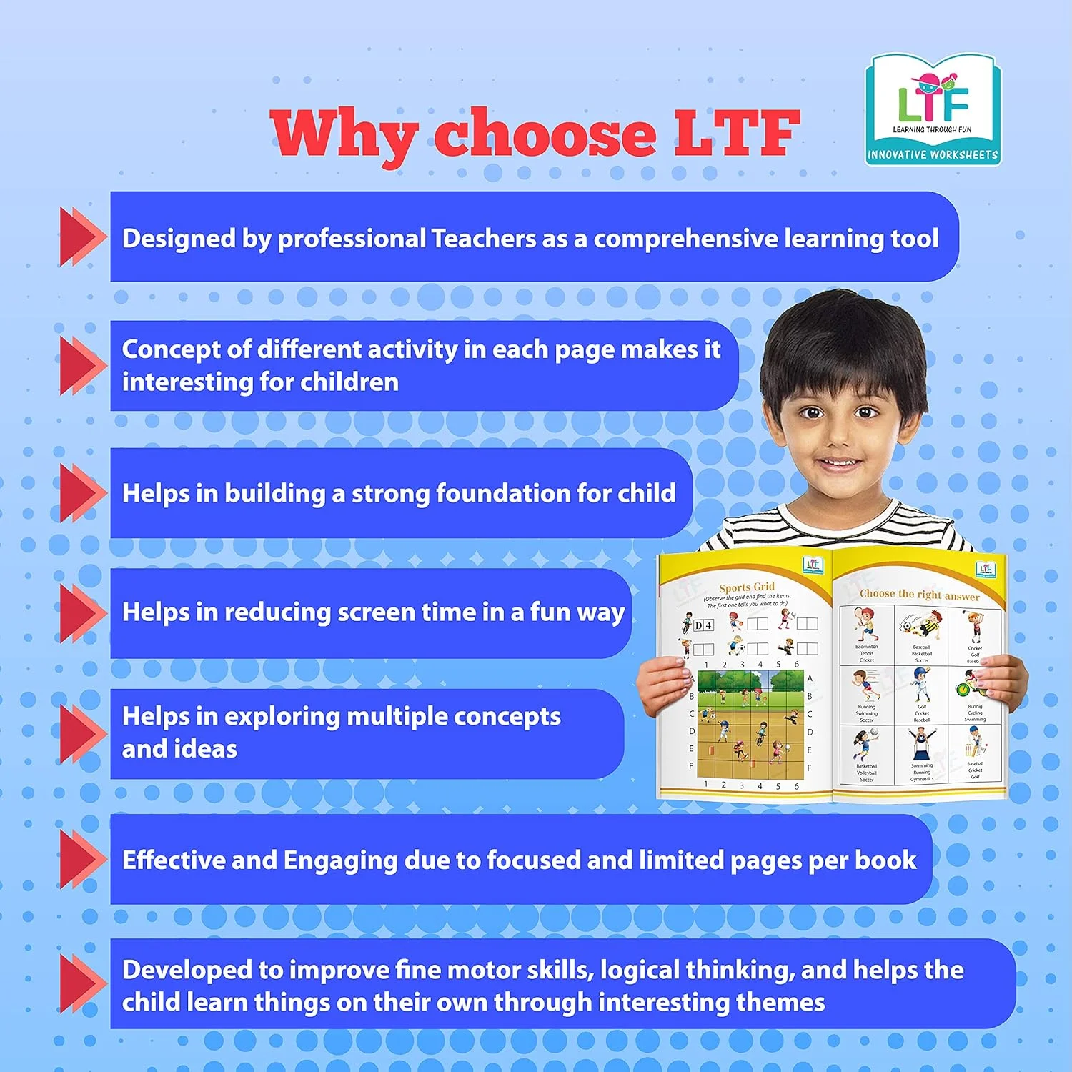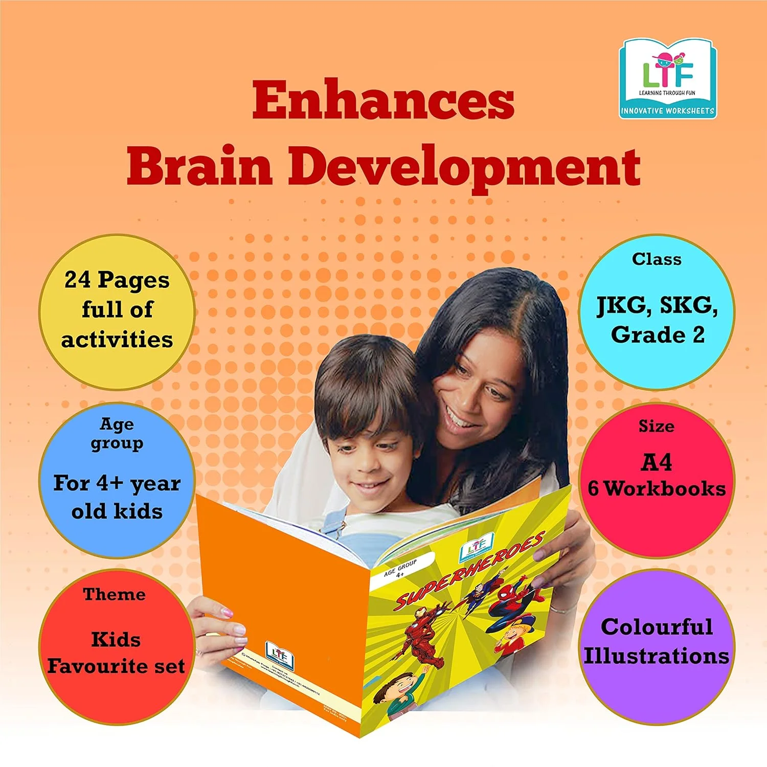 Learning Through Fun Kids’ Favourite Set of 6 is designed for children aged 4–8 years, offering creative, theme-based activity books that make learning enjoyable and engaging. Fun characters and colourful illustrations spark curiosity while helping children understand key academic concepts. The set covers Maths, English, Logic, Environment, and General Awareness through daily practice activities that build strong foundational skills. Key Features Set of 6 themed activity books for ages 4–8 Includes Under the Sea, Space, Superheroes, Peppa Pig, Animals & Sports Activity-based worksheets for Maths, English & logic skills Designed by professional teachers as per school curriculum Improves attention, phonetic skills, fine motor & problem-solving skills Different activity on every page for better engagement Helps reduce screen time by up to 90 minutes Ideal for gifting, home schooling & post-school practice A fun, educational, and screen-free learning set for everyday practice.