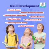 • Worksheets developed to improve attention, direction following, phonetic skills, fine motor skills, logical thinking, problem-solving and help the child learn things on their own through engaging themes.