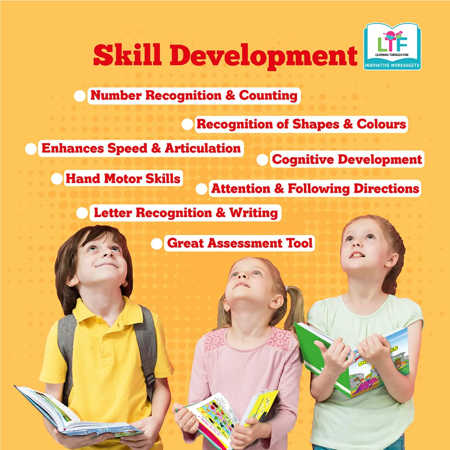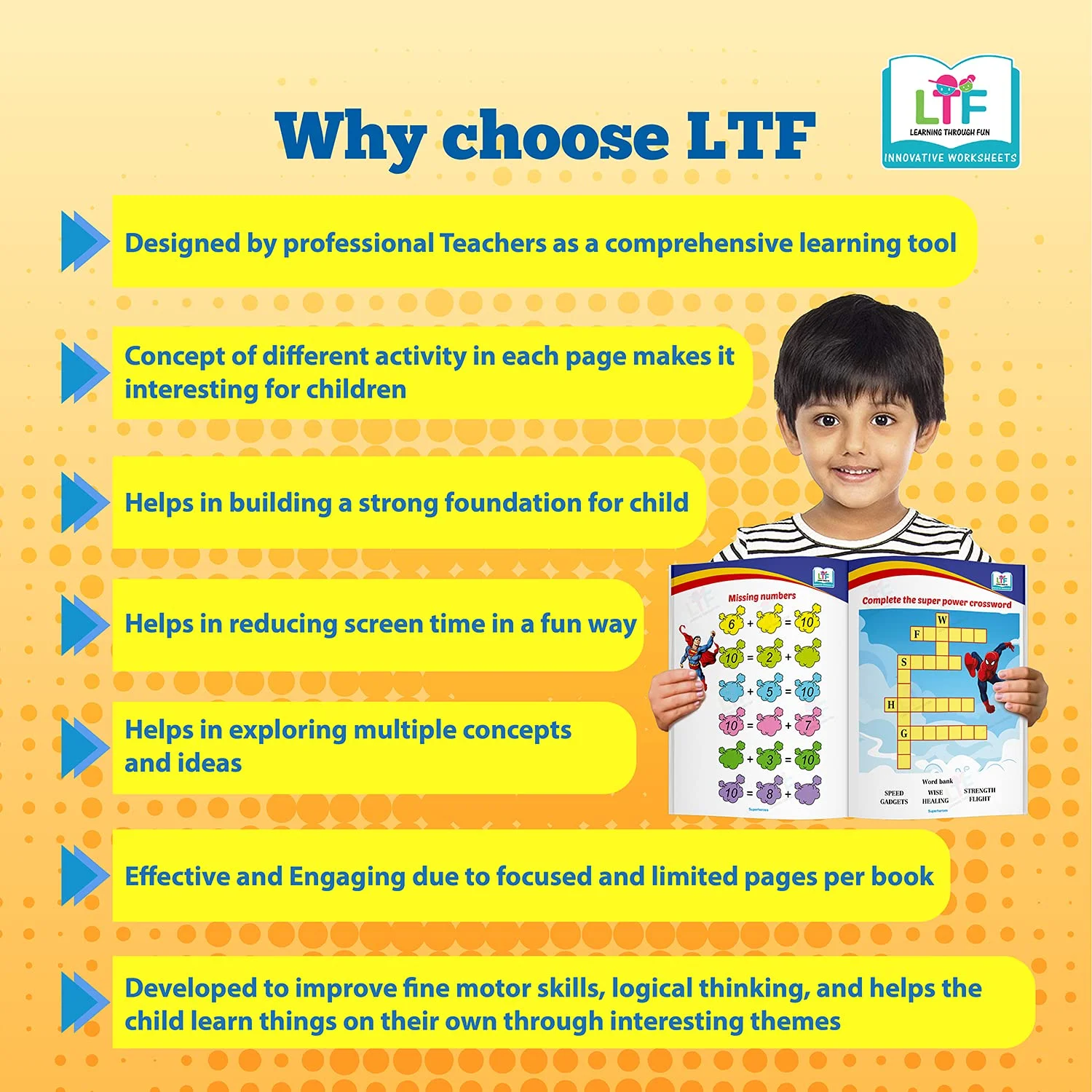 Activities developed to improve fine motor skills, logical thinking and help the child learn things on their own through engaging themes. LTF Activity Books are a comprehensive assessment tool for parents to monitor the progress of their children. The activity books help build a strong foundation for the kids and help in exploring multiple concepts and ideas.