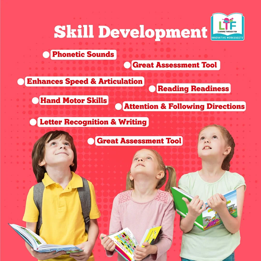 - Worksheets developed to improve attention, direction following, phonetic skills, fine motor skills, logical thinking, problem-solving and help the child learn things on their own through engaging themes.