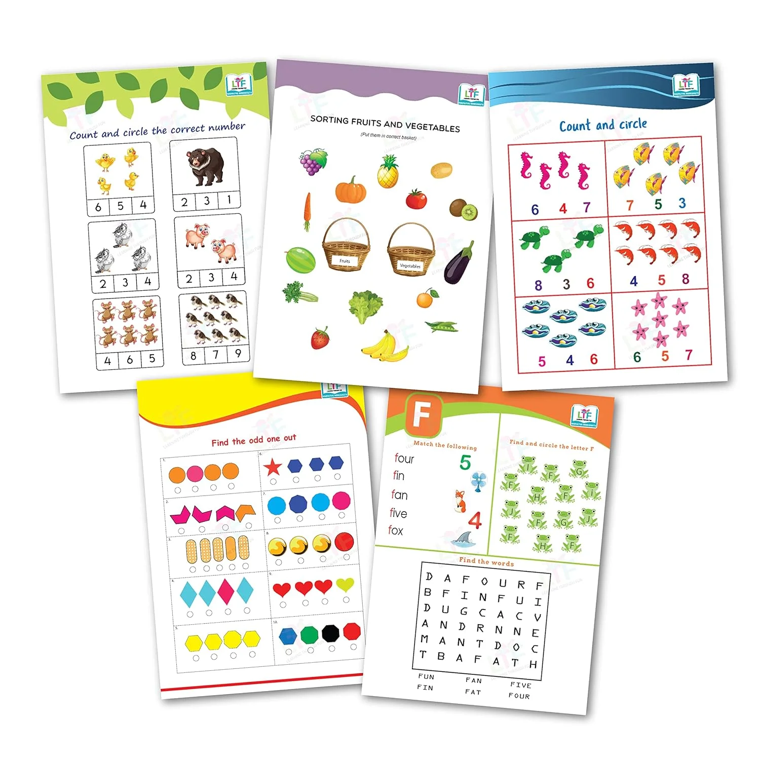 - Activities include Word search, Match the following, Find the odd one out, Find the letter, Count and circle, Sorting, and many more activities that will encourage the little learners to practice every day, learn new concepts, and perfect them by practicing every day.