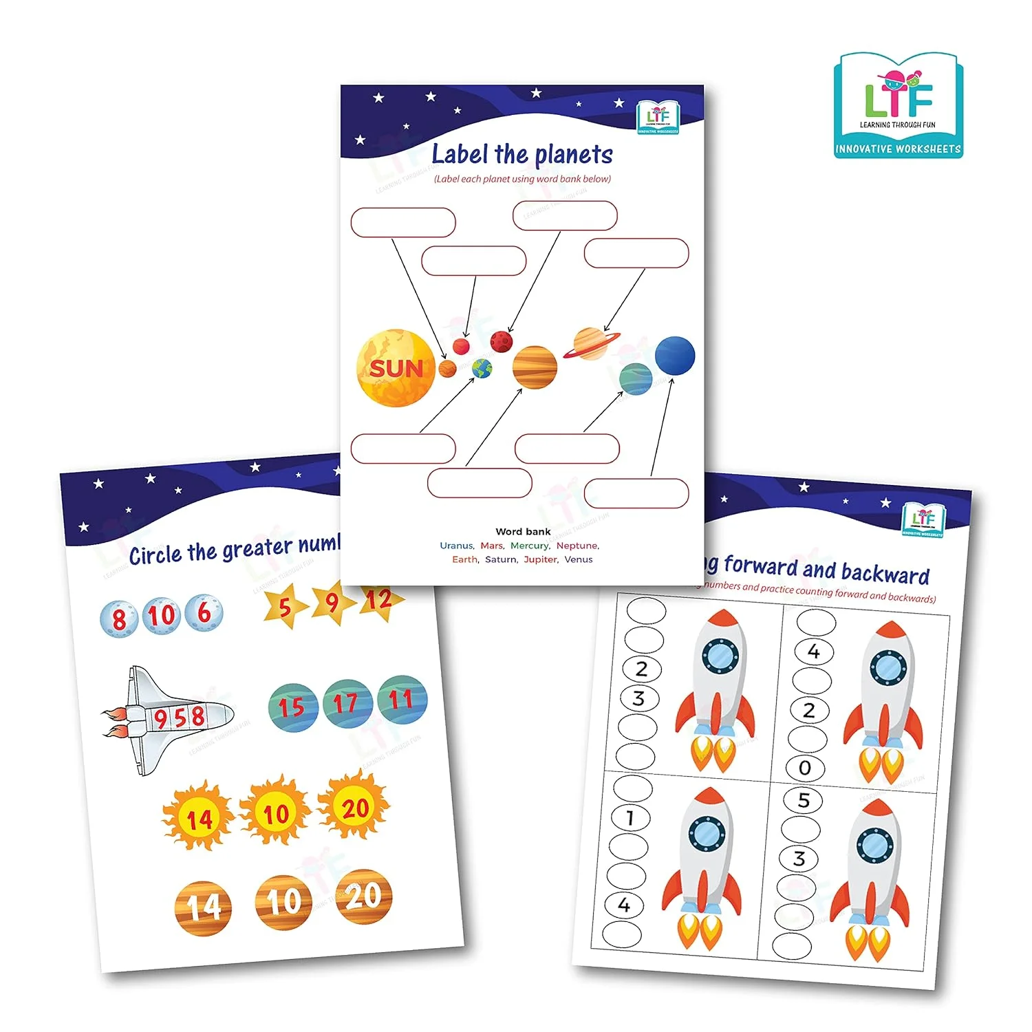 • The Space activity book introduces children to outer space, with activities such as labeling planets of the solar system introduces children to a whole new concept, discussion, and awareness.