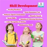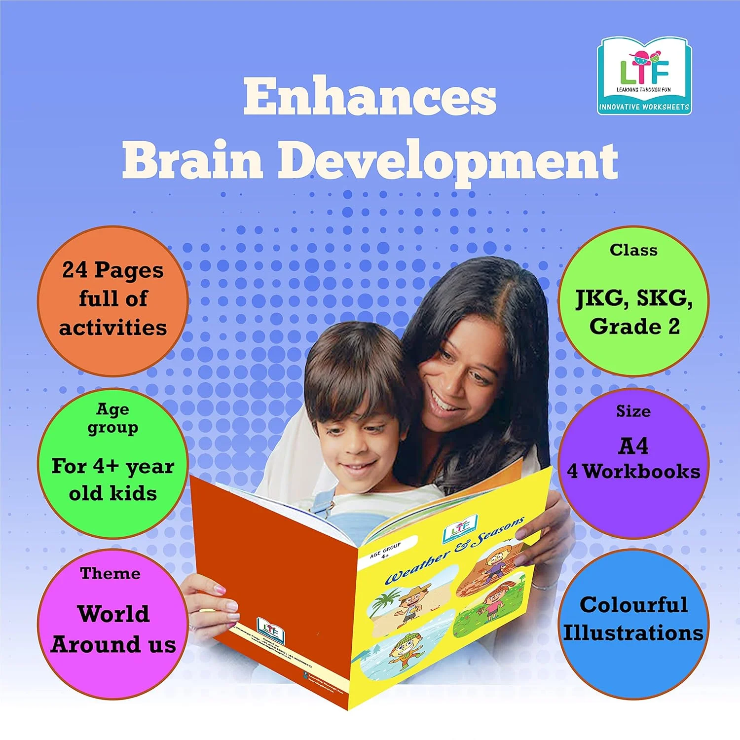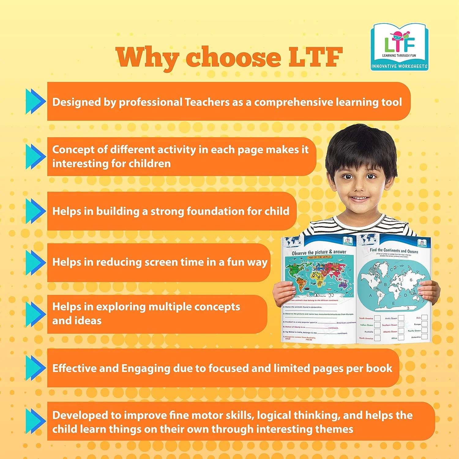 - Worksheets developed to improve attention, direction following, phonetic skills, fine motor skills, logical thinking, problem-solving and help the child learn things on their own through engaging themes.